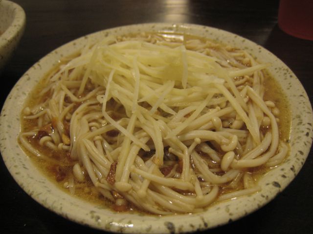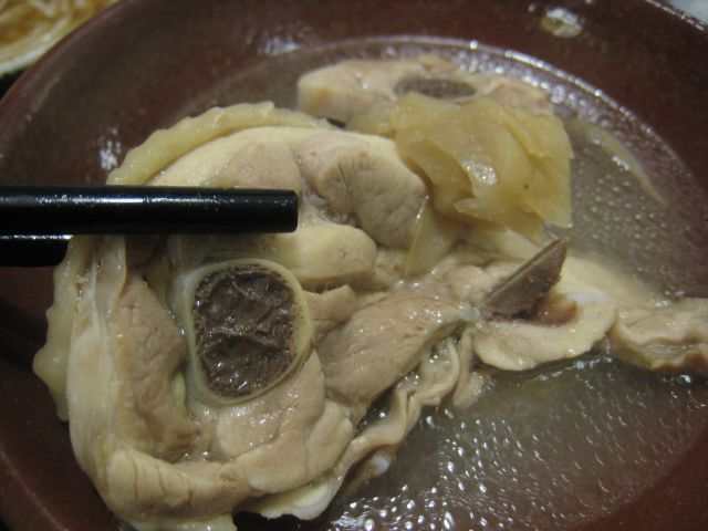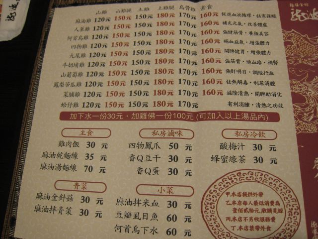 我們點了一份菜脯雞山雞腿(150)、一份麻油金針菇(30)、一份麻油乾麵線(35)